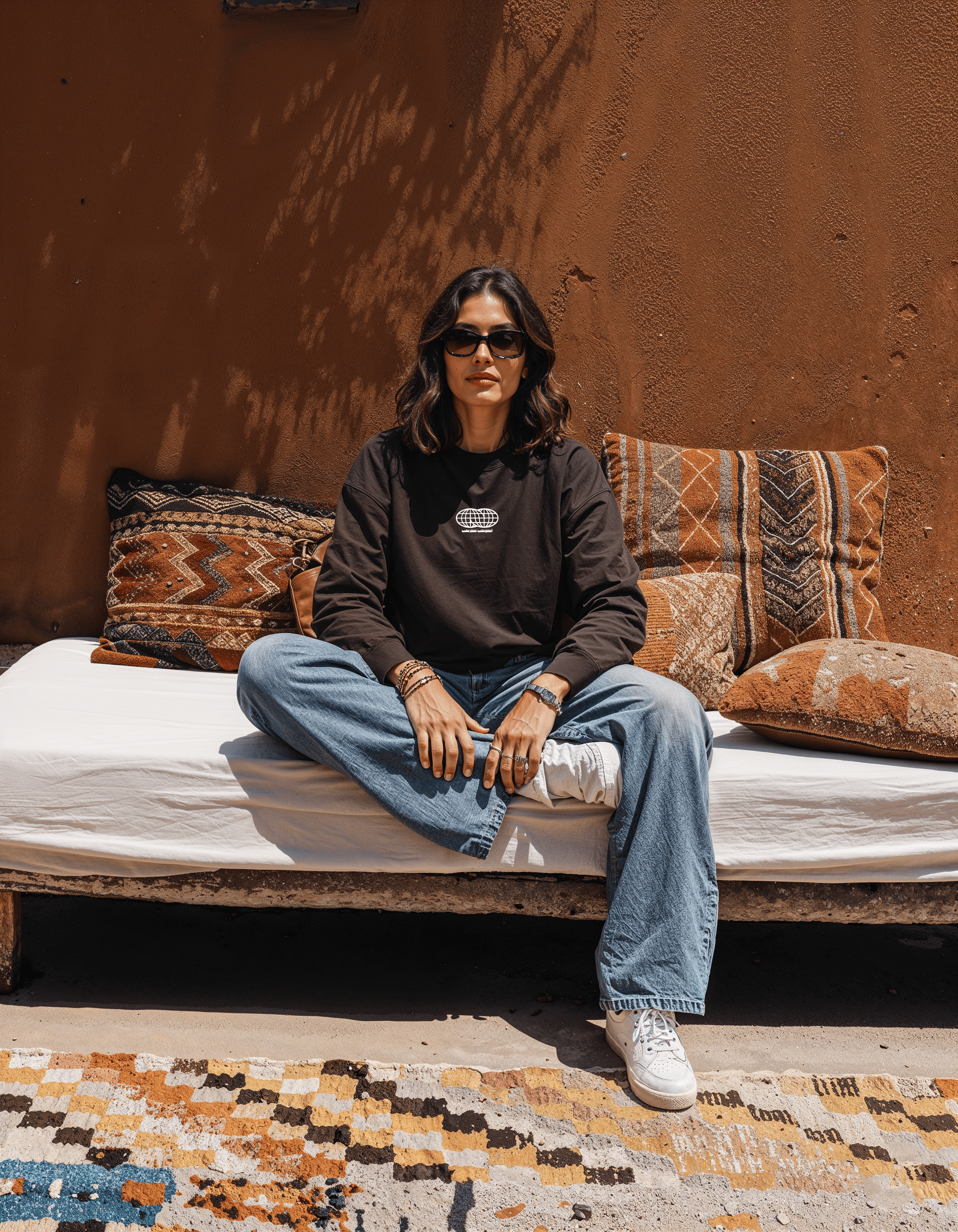 El Kawkab Unisex Oversized Crew-neck Sweatshirt - Dark Brown
